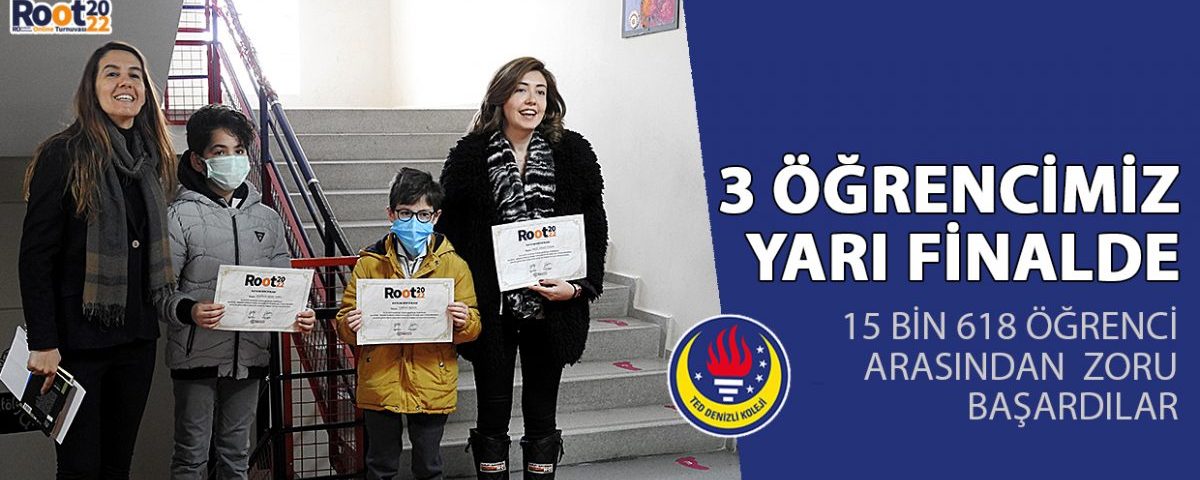 Ülkenin en büyük online robotik turnuvası olarak gösterilen ROOT 2022 Robotik Kodlama Turnuvası başladı. Turnuvada TED Denizli Koleji’ni temsil eden 3 öğrencimiz, 15 bin 688 öğrenci arasından yarı finale kalmaya hak kazandı. Her öğrencinin bireysel olarak yarıştığı yarışmada 4. Sınıf öğrencilerimiz Halil Demir Özden, Furkan Sezgin ve Mustafa Kemal Karcı yarı finale kalarak gurur kaynağımız oldu.