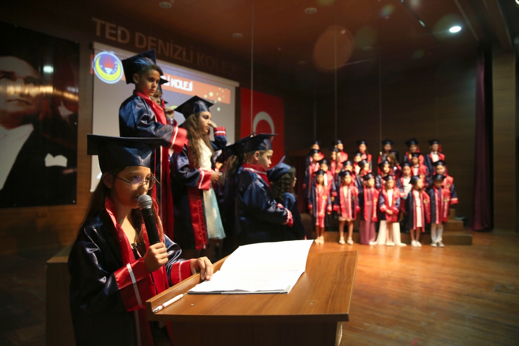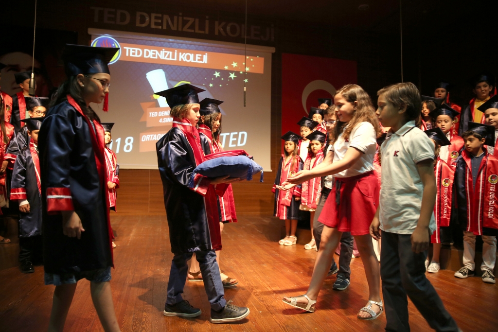 4.Sınıf öğrencilerimiz TED Denizli Koleji konferans salonunda gerçekleşen Ortaokula Merhaba töreni ile diplomalarını aldılar. Coşkulu geçen törende derece alan öğrencilerimize plaket verildi. Flama devir teslimi gerçekleşti. Onları bugünlere getiren değerli veli ve öğretmenlerimizi kutlar, bundan sonraki eğitim öğretim döneminde başarılarının devamını dileriz.
