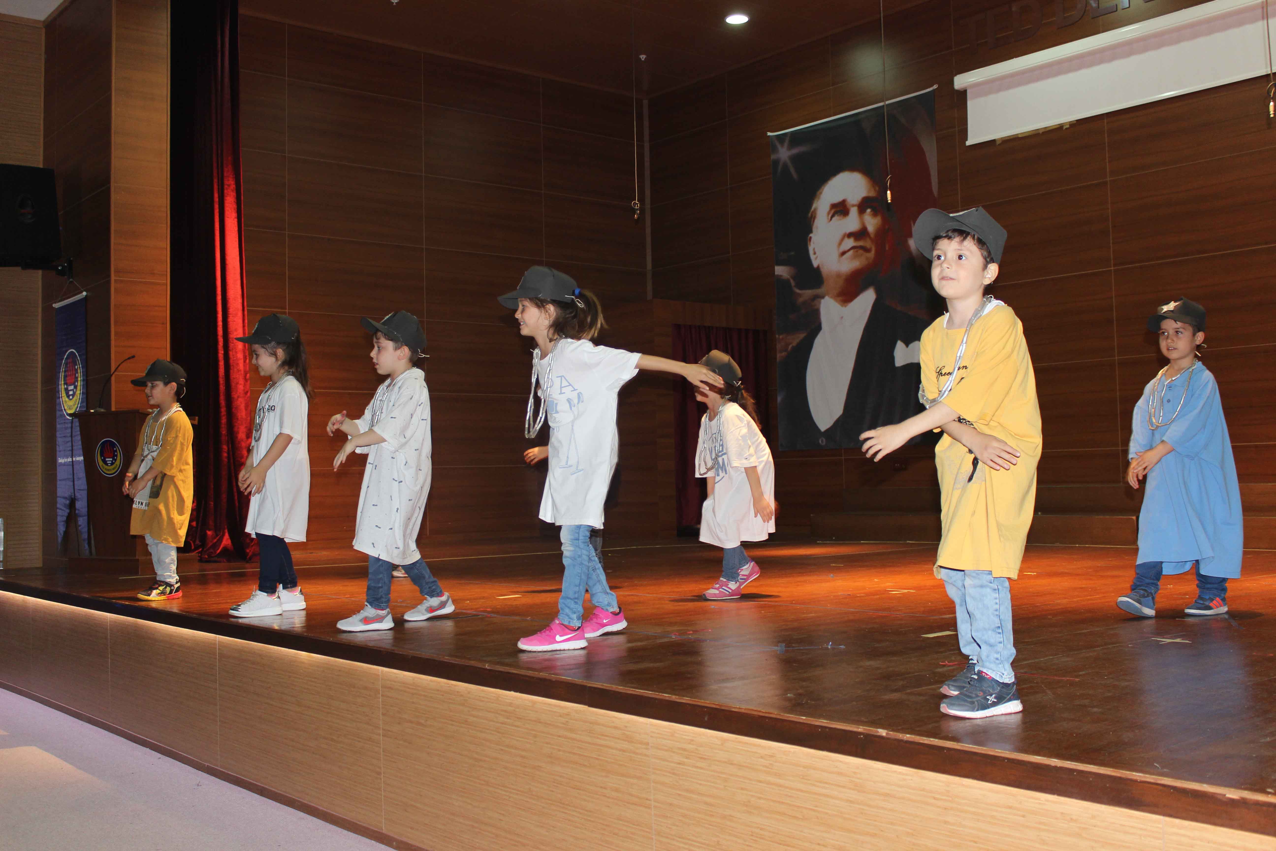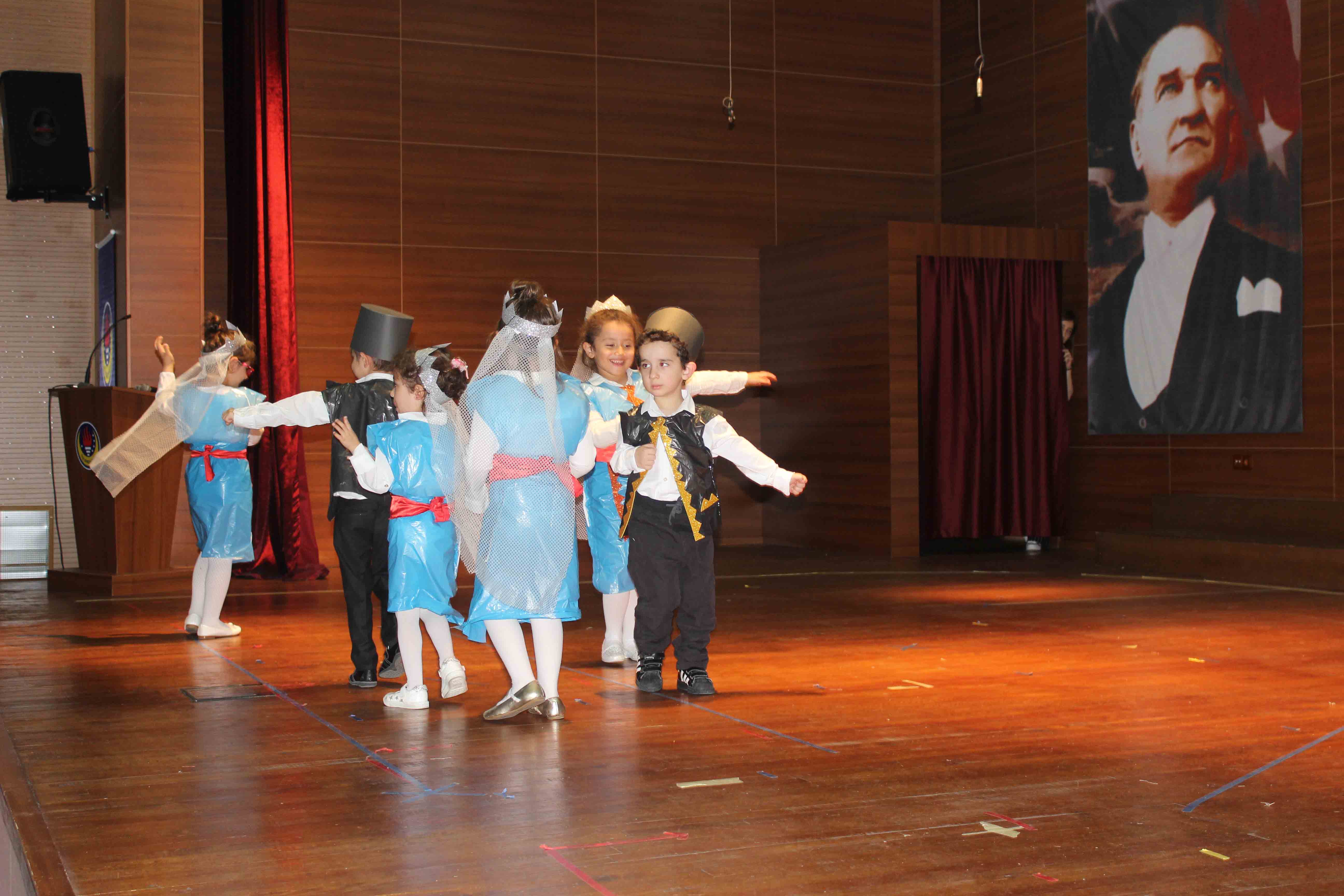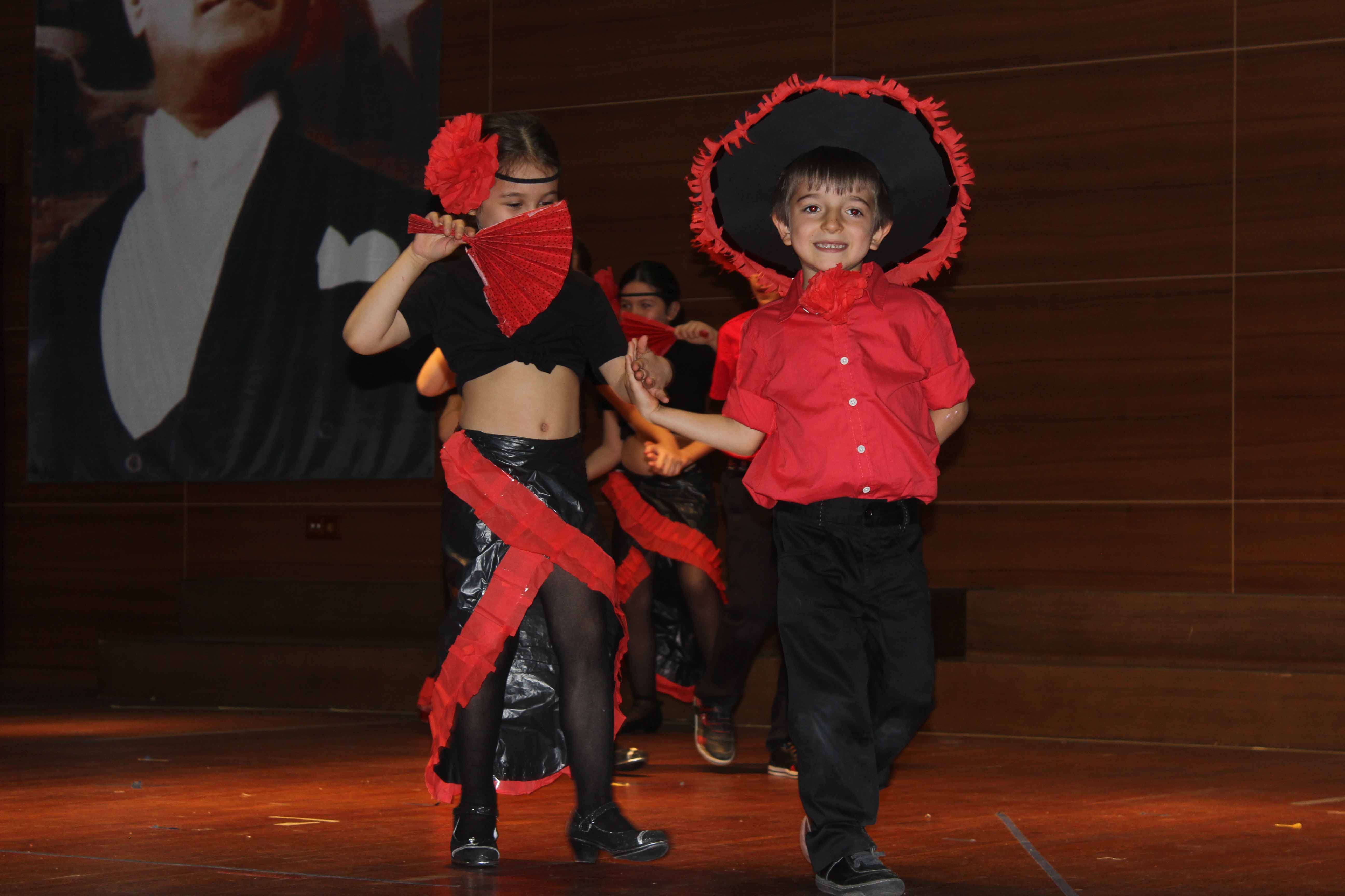 Anasınıflarımız gerçekleştirdikleri ‘Dünya Çocukları’ temalı etkinlikte farklı ülkelerin yemekleri, kıyafetleri, çocuk oyunları, müzikleri, dansları, dilleri gibi özelliklerini araştırdılar. Öğrendikleri bilgilerle ‘Dünyayı Gezen Çocuk’ hikayesini yazdılar. Okulumuzda biriktirdikleri artık materyallerden tasarladıkları farklı ülkelere ait dans kıyafetleri ile o ülkenin dansını annelerine sundular.
