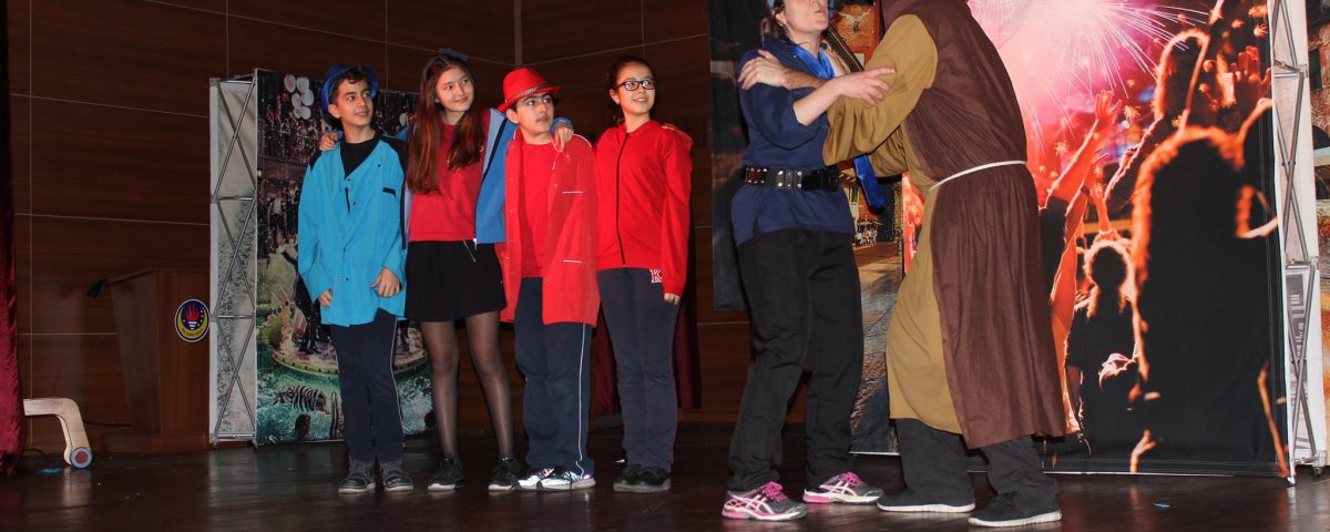 [:tr]Öğrencilerimizin dili her alanda etkin bir şekilde kullanmaları ve İngilizceyi sanatın içinde de keşfetmeleri için yurt dışından harika bir tiyatro ekibini okulumuza davet ettik. Öğrencilerimizin de oyuna dahil olmasıyla tiyatro sahnemiz şenlendi ve Romeo&Juliet oyunu daha büyüleyici bir hal aldı.[:]